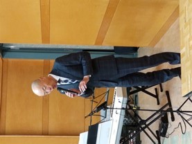 朝倉先生からはプログラムに書かれてある第九の歌詞が持つ意味を紹介いただきながら、今年は第九が初演されて200年に当たり、フランス革命の後で「おお友よ!」、「兄弟よ抱き合え!」と呼びかけられたときの聴衆の受けた衝撃のすごさを想像してみてくださいとお話しされた後、「今日ここで会場の皆さんと一緒に高らかに第九を歌います。名張でこの歌を皆さんが大合唱しても世界は変わりません。とっても微力なのですが、決して無力ではないと私は思います。皆さんで歌うことがベートーヴェンの望みなんですから、音程が外れようが、歌詞が分かりにくそうが、気にしないで大きな声で歌ってください」と、いつもながら親しみやすいお話でした。