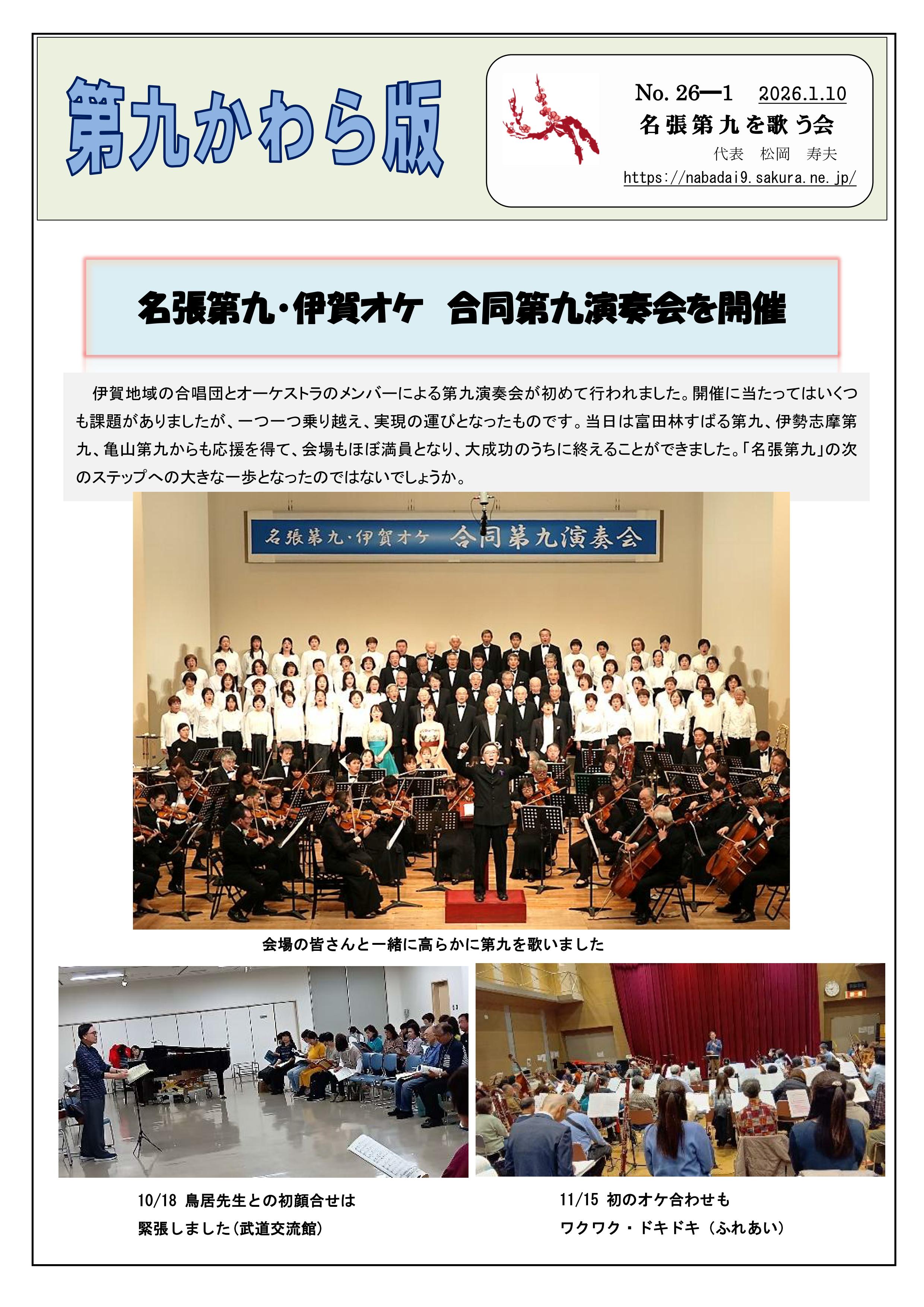 会員への情報誌「第九かわら版」2026年分です。